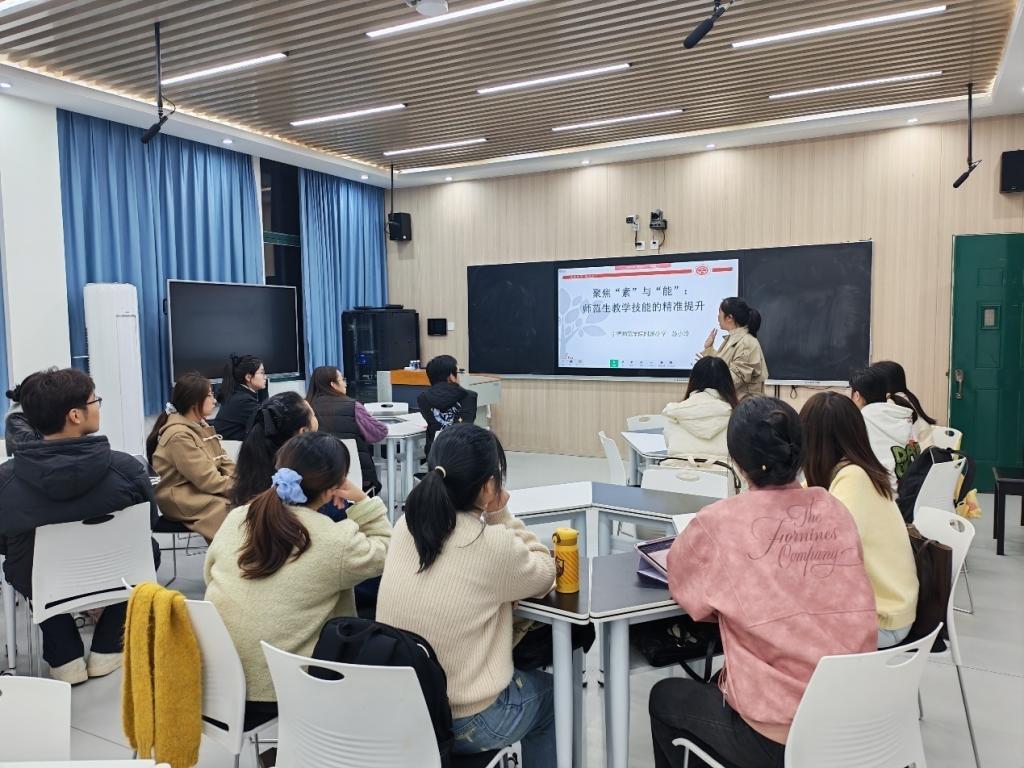 为扎实做好第十二届福建省师范生教学技能大赛的准备工作,助力我校师范生夯实教学基本功,提升师范生教学技能大赛备赛质量,11月20日晚上,教务处邀请宁德师范学院附属小学苏小玲老师为我校师范生做《聚焦“素”与“能”:师范生教学技能的精准提升》的专题讲座。我校师范生教学技能竞赛的种子选手及其指导教师参加讲座。