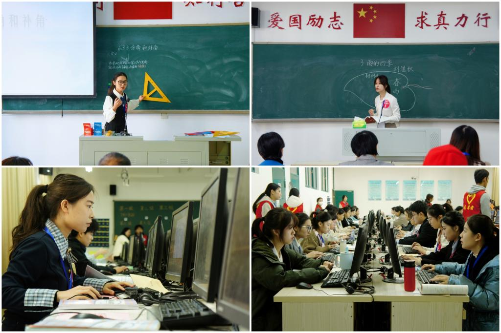 本届大赛按学段分中学组、小学组、学前教育三个学段,共16个学科、18个小组,共设置教学设计、模拟课堂教学和专家提问等三个环节,对参赛选手的基本功和实践教学能力进行考察。选手们按课程标准和教学设计规范进行45分钟的教学设计,再进行15分钟的模拟课堂教学和8分钟的评委问答。比赛现场,参赛选手以饱满的精神配以流畅的言语,生动的肢体动作以及丰富多彩的互动将评委们带至教学情景之中,呈现了一堂堂优质高效的片段课堂教学,充分展现了师范生的教学潜力与专业风采。