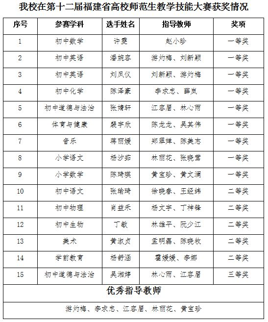 经过激烈角逐,大赛最后决出一等奖51名,二等奖70名,三等奖68名,优秀指导教师36名、优秀组织奖10项。我校共选派15名选手参赛,共斩获一等奖9项,二等奖5项三等奖1项,5位老师获优秀指导教师奖,学校连续九届获“优秀组织奖”,创下学校参与该赛事以来的历史最佳成绩。